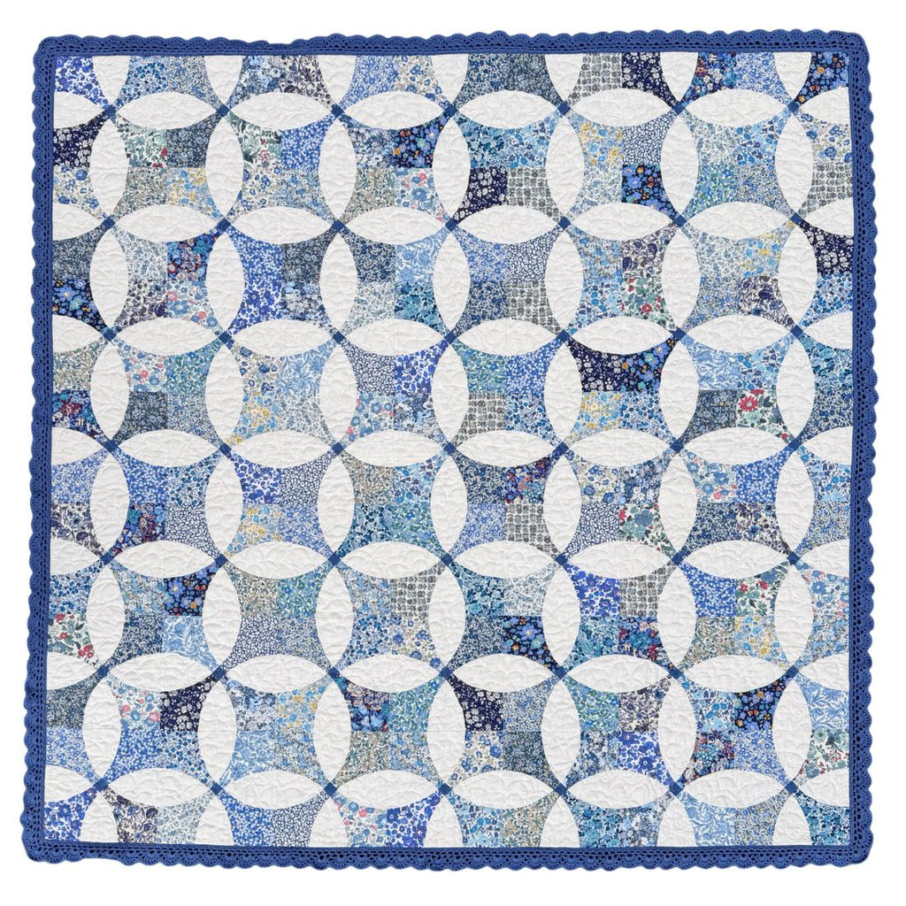 The exquisite range of Tana Lawn blue prints combine with the Lasenby Cream on Cream Silhouette fabric to create a stunning china blue inspired quilt.
